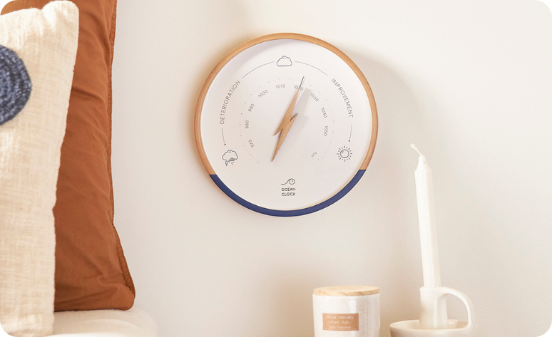 For centuries, the barometer has been a tool used to predict the weather. In addition to its role as a weather indicator, the Ocean Clock barometer also serves as a decorative object just like our tide clocks. But how does a barometer work?